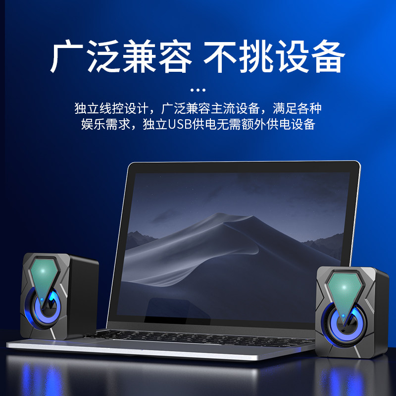 Suitable for Huawei cool lighting Computer audio Desktop notebook indoor home wired small speaker desktop USB mini small speaker High quality external subwoofer speaker wire control