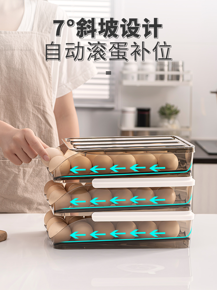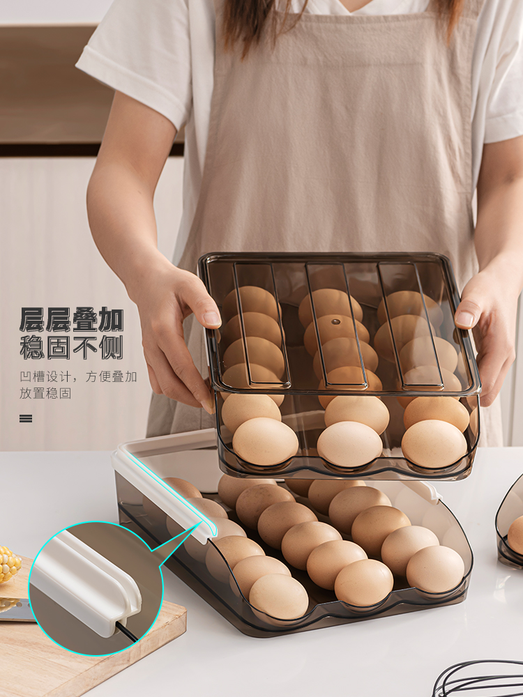Refrigerator with egg storage box automatically roll eggs multi-layer superimposed with cover shockproof anti-fall plastic egg rack egg tray