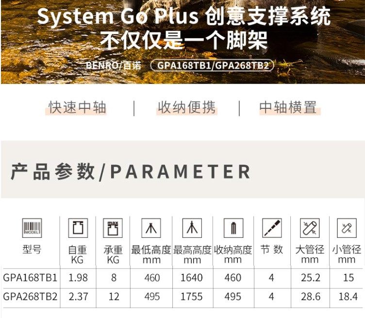 Benro gpa168tb1 gpa268tb2 SLR phase center axis horizontal horizontal overhead shot aluminum alloy tripod bracket