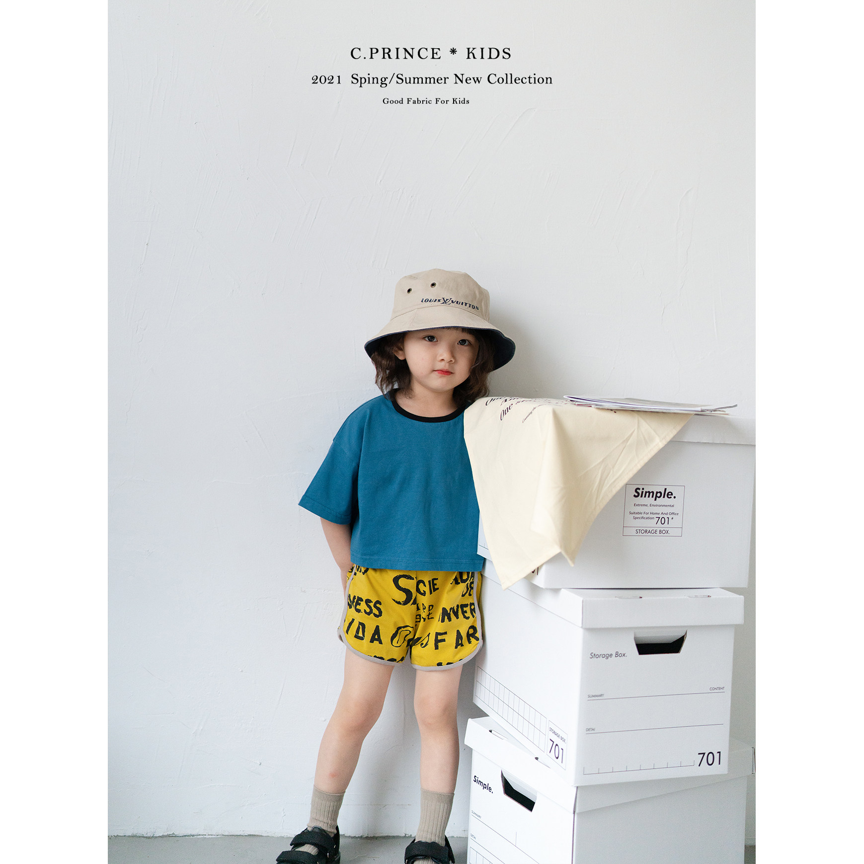 C PRINCE) Retro sports style resurgence Pima cotton short-sleeved T cotton printed shorts girls