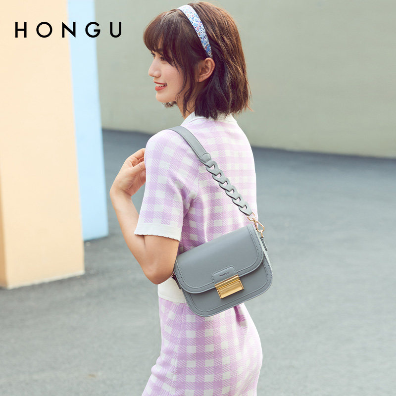 Red Valley Women's Bag 2021 New Casual Bull Leather Personality Small Square Bag Wide Shoulder Strap Single Shoulder Bag Tofu Slanted Satchel 3902
