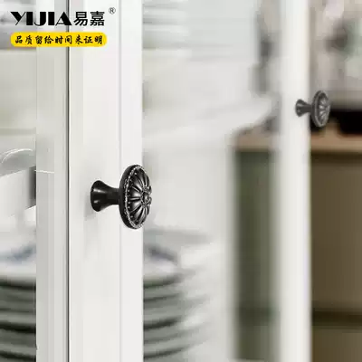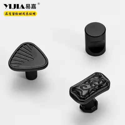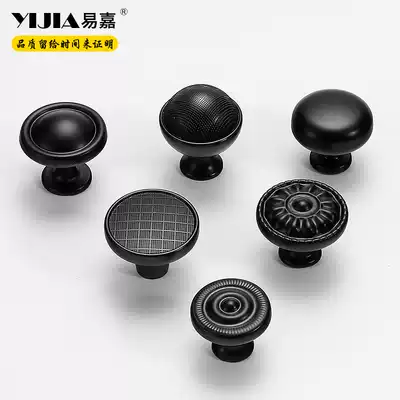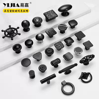 Yi Jia black integral cabinet drawer single hole handle European household pull ring button bedside table wardrobe door handle
