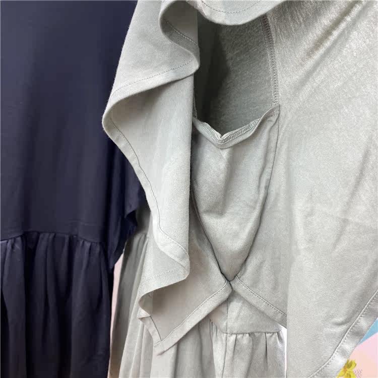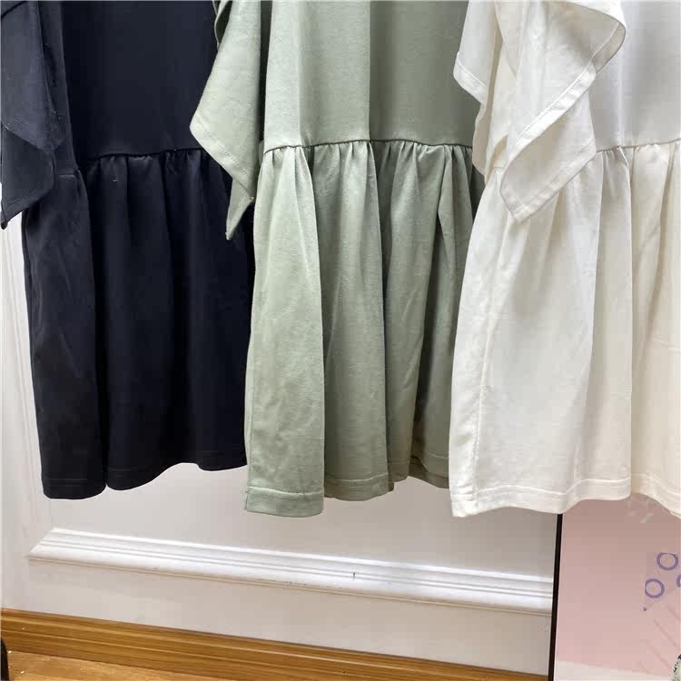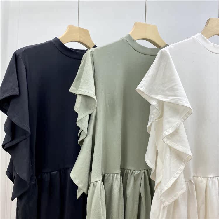 SNI * DEL pure yuan cut label 2021 spring and summer new sweet age-reducing ruffle stitching pleated long version cotton T-shirt