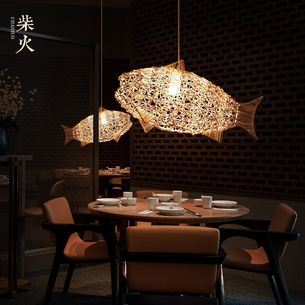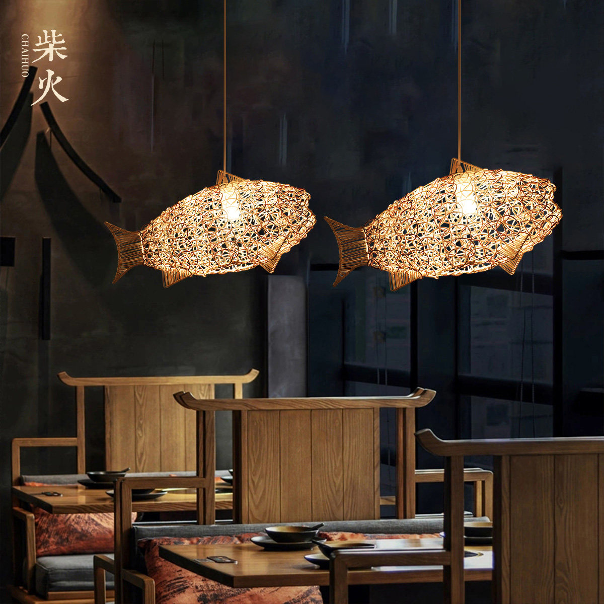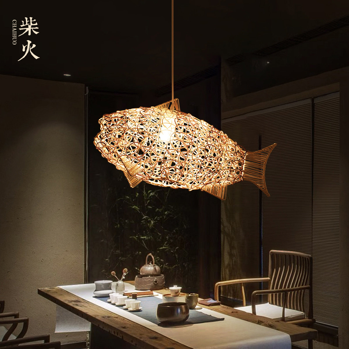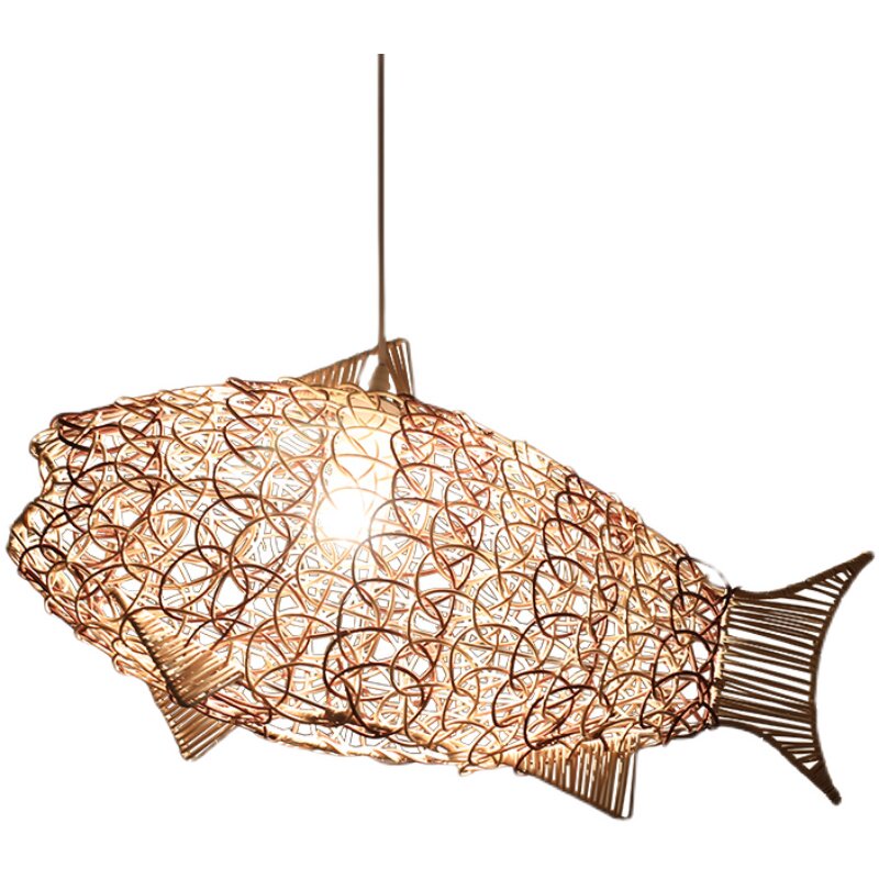 Day Style Brief Individuality Creativity Folk meditation Antique Tea Room Fish-shaped Design Chandelia Handwoven Natural Rattan