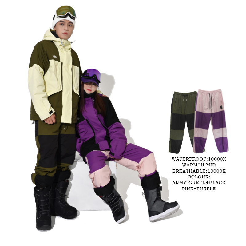 LOVMTSEA Le Munch men and women's single double board Korean version loose ski pants waterproof and warm spell flat flower snowsuit