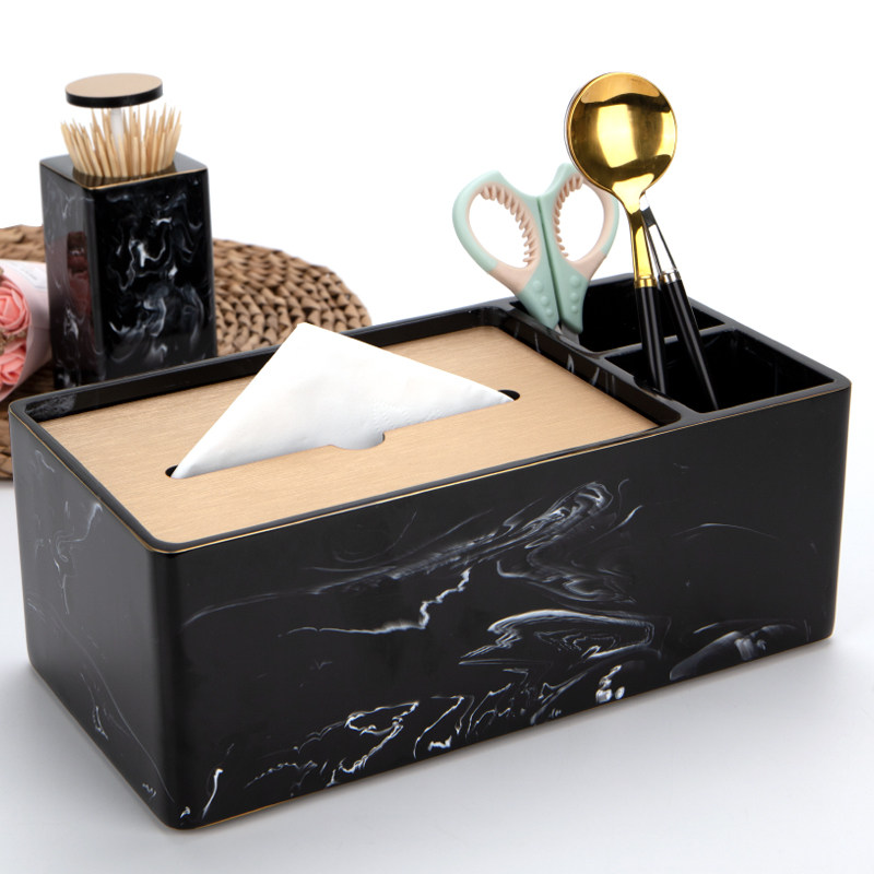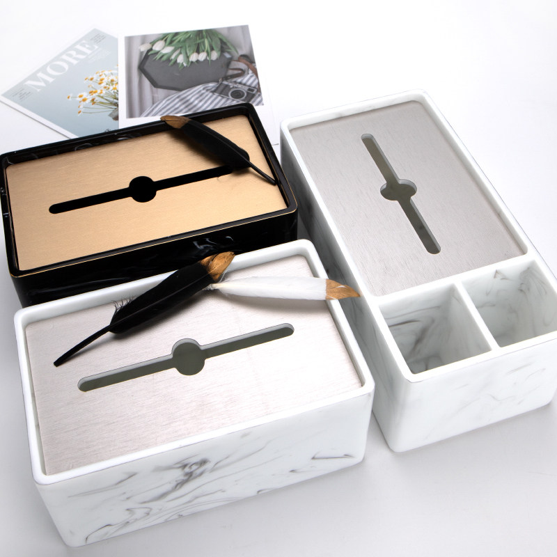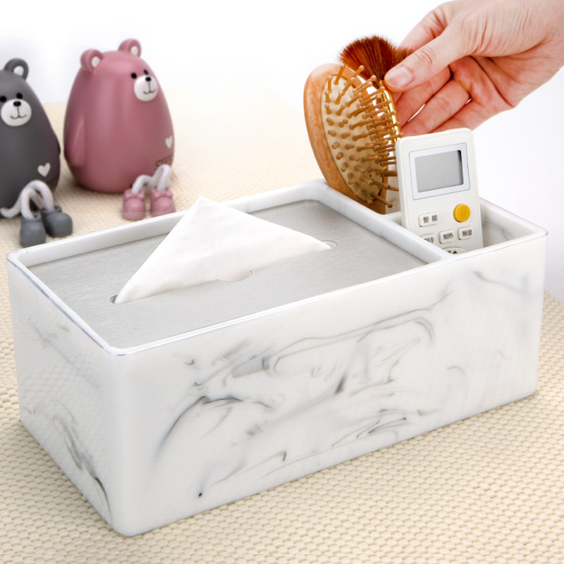 Tissue box Living room light luxury creative multi-function remote control Coffee table Napkin storage imitation marble pattern toilet paper box