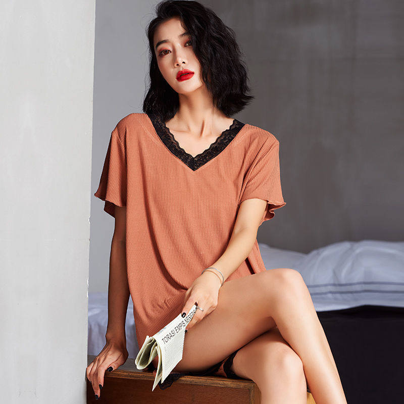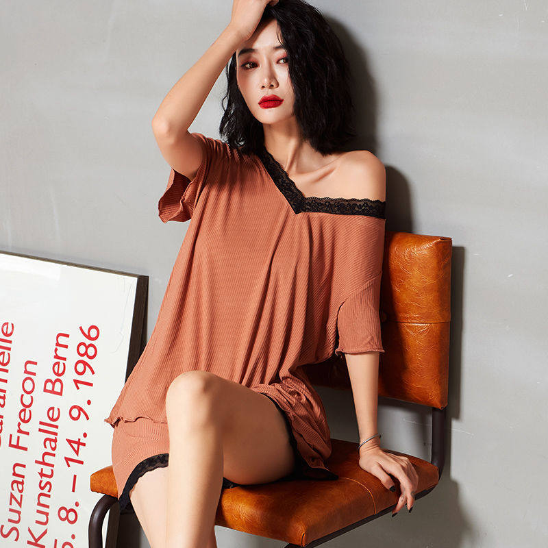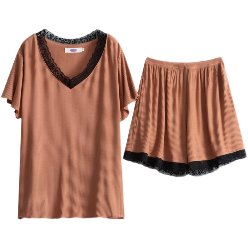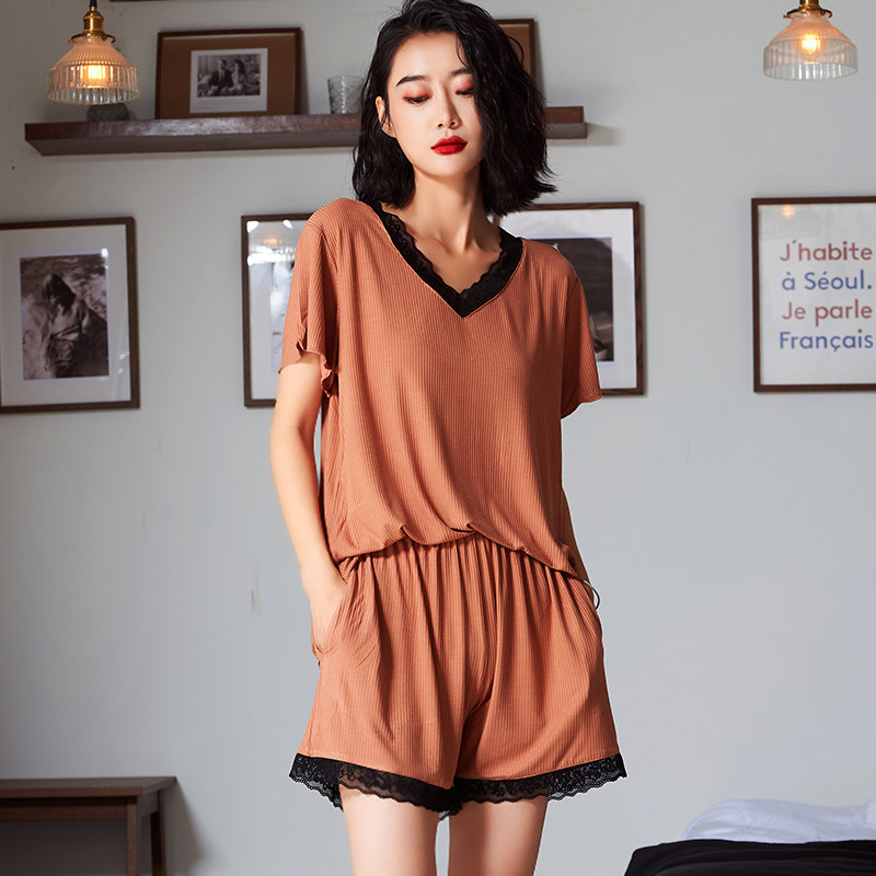 Modal pajamas women's summer ultra-thin short-sleeved short-sleeved two-piece lace sexy loose homewear suit summer