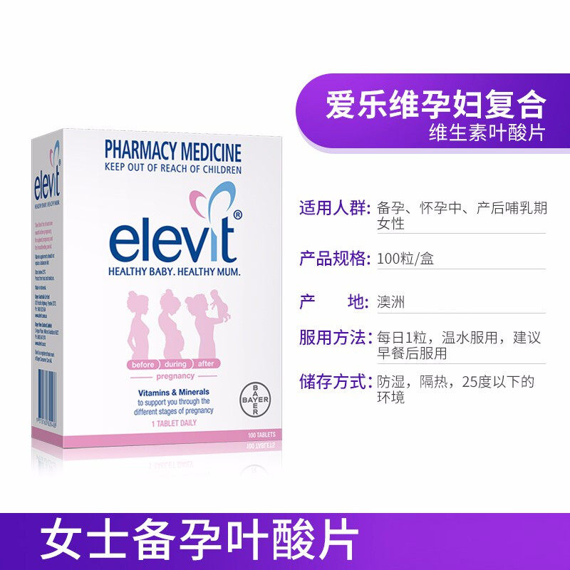 Australian ElevitElevit Folic Acid Tablet Pregnant Women Special Pregnancy Dha Active Supplement Compound Vitamin 100 tablets
