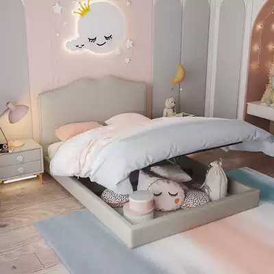 American light luxury children bed girl princess bed modern simple single bed children's room real leather bed solid wood girl bed