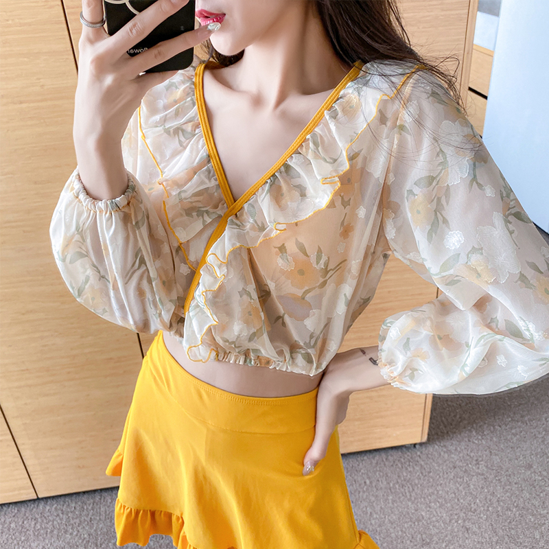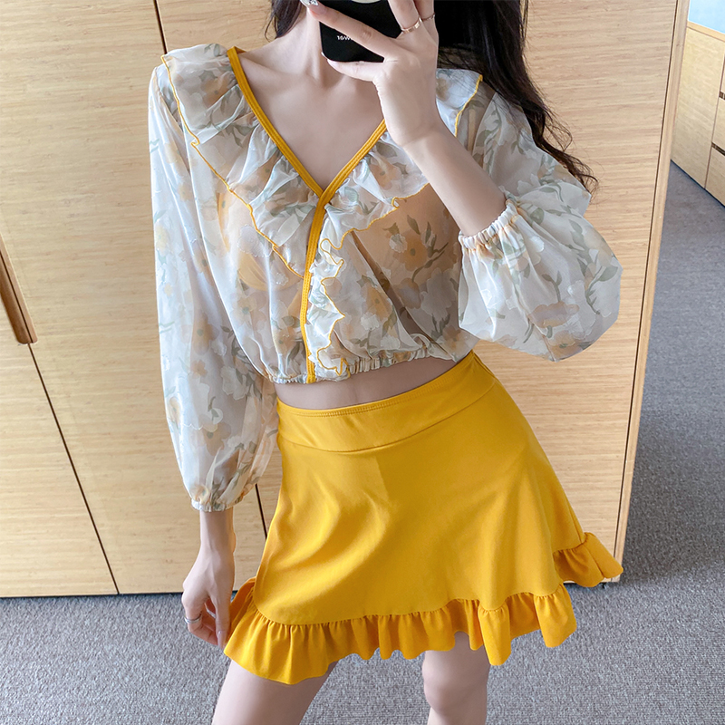 Broken flower ins small fragrance style conservative cover belly slimming three-piece set fairy sunscreen 2021 new hot spring swimsuit women's summer