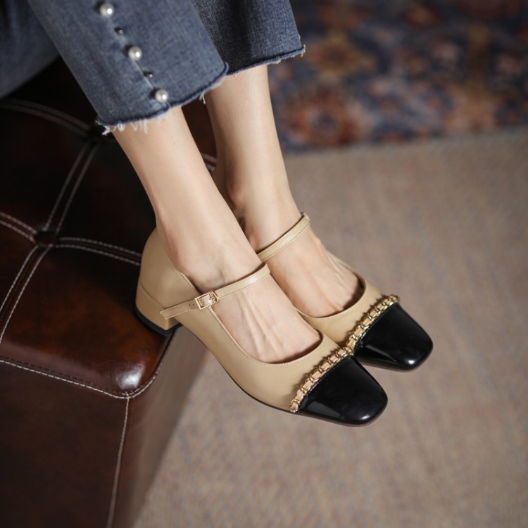 KAKY French retro - shoe woman rough heel 2022 new small fragrance chain shallow slip with Mary jewel shoes