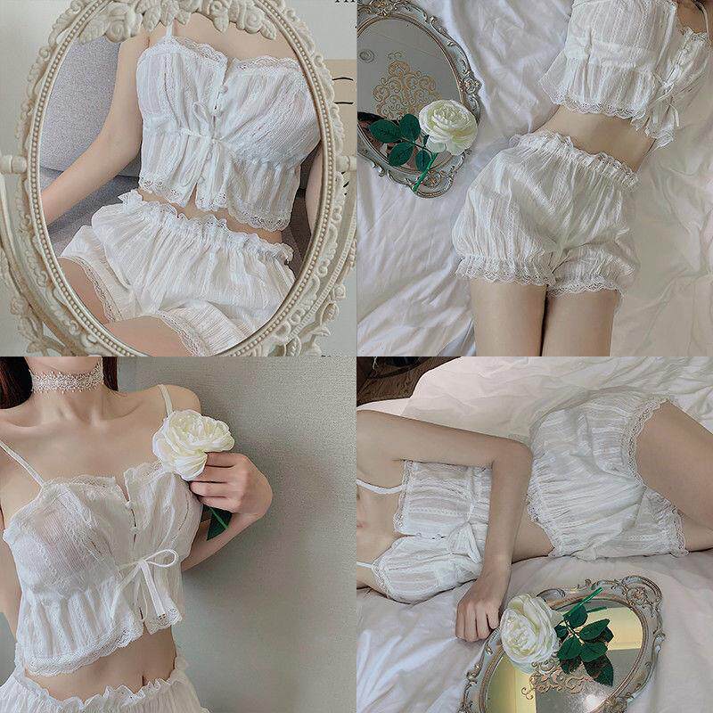Harness Sleepwear Woman Summer Charming Sexy Suit White Mesh Red Seductive Cute Student Korean Version Little Subs Home Clothes