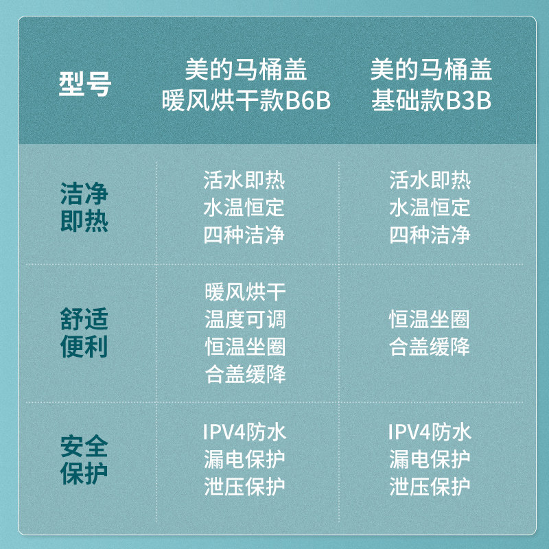 Enquire and enjoy the discount! (Smart Toilet Lid-B6B) Warm Air Drying Antibacterial Self-cleaning Multiple Cleaning (Smart Toilet Lid-B3B) Constant Temperature Antibacterial Self-cleaning Instant Cleaning (Smart Toilet Lid-B6B) Double Bathroom Family 2 Packs (Warm Air Antibacterial Multiple Cleaning) (Smart Toilet Lid-B3B) Double Bathroom Family 2 Packs (Constant Temperature Antibacterial Self-cleaning Instant Cleaning)