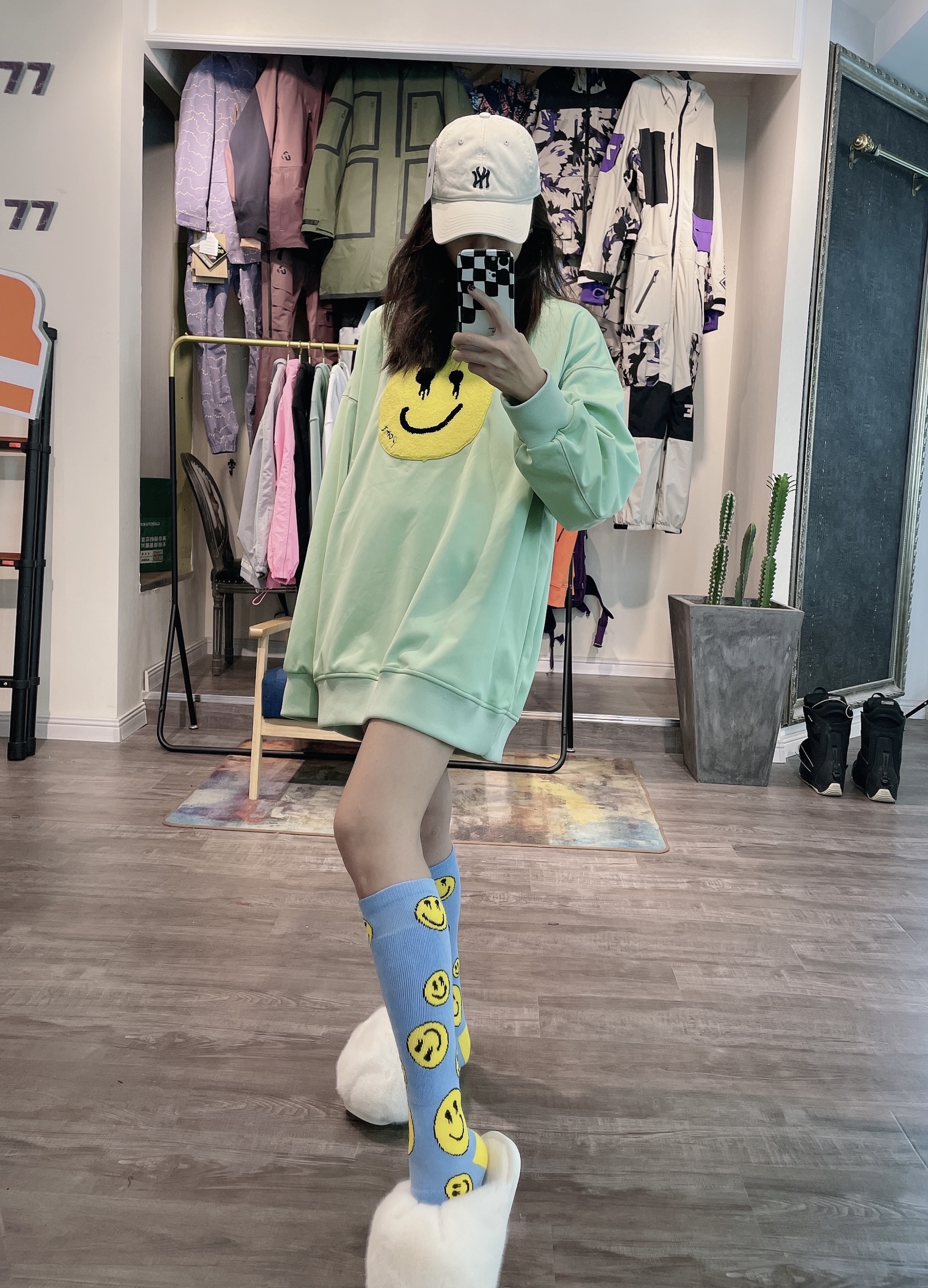 Shangguan Sa POMT Smiley Waterproof Round Neck Thick Cotton T Fleece Warm Waterproof Ski Shirt Skateboard Men and Women Same Style