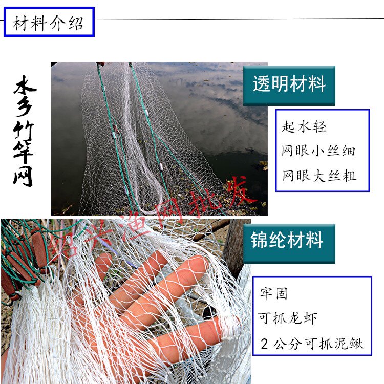 Net Bamboo Pole Net Fishing Mesh Nylon Thread Lobster Loach Picking up the Net Lifting Water