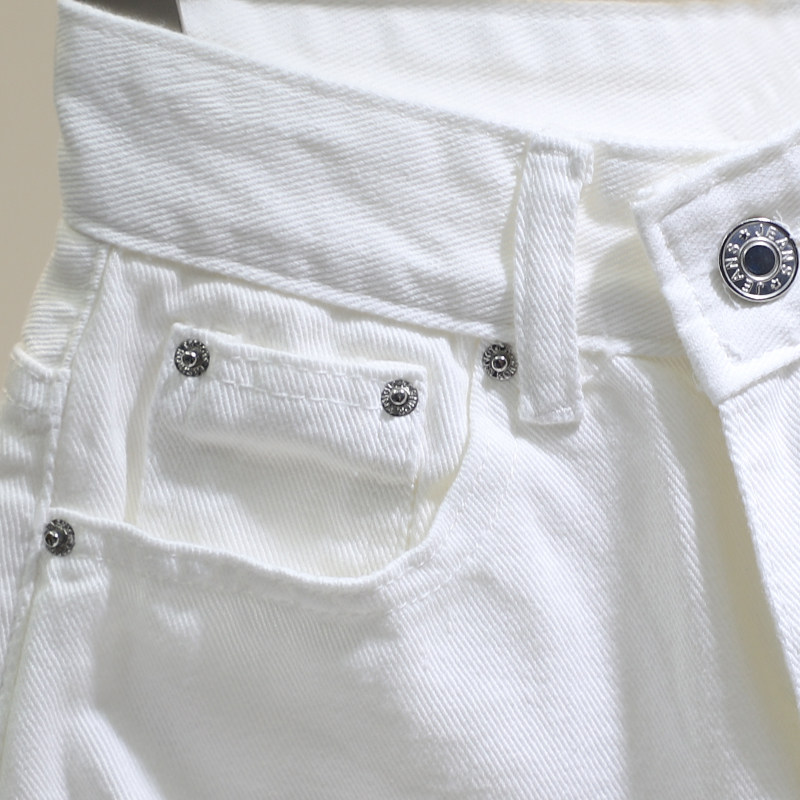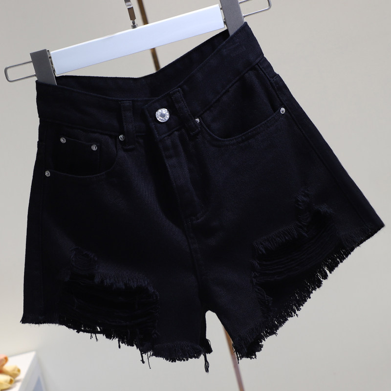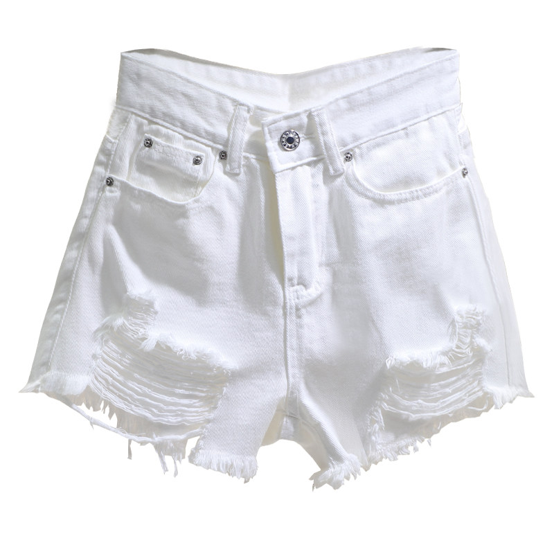 Boomer white high waist denim shorts women 2022 Summer new loose holes large size Wide-legged a pair of hot pants