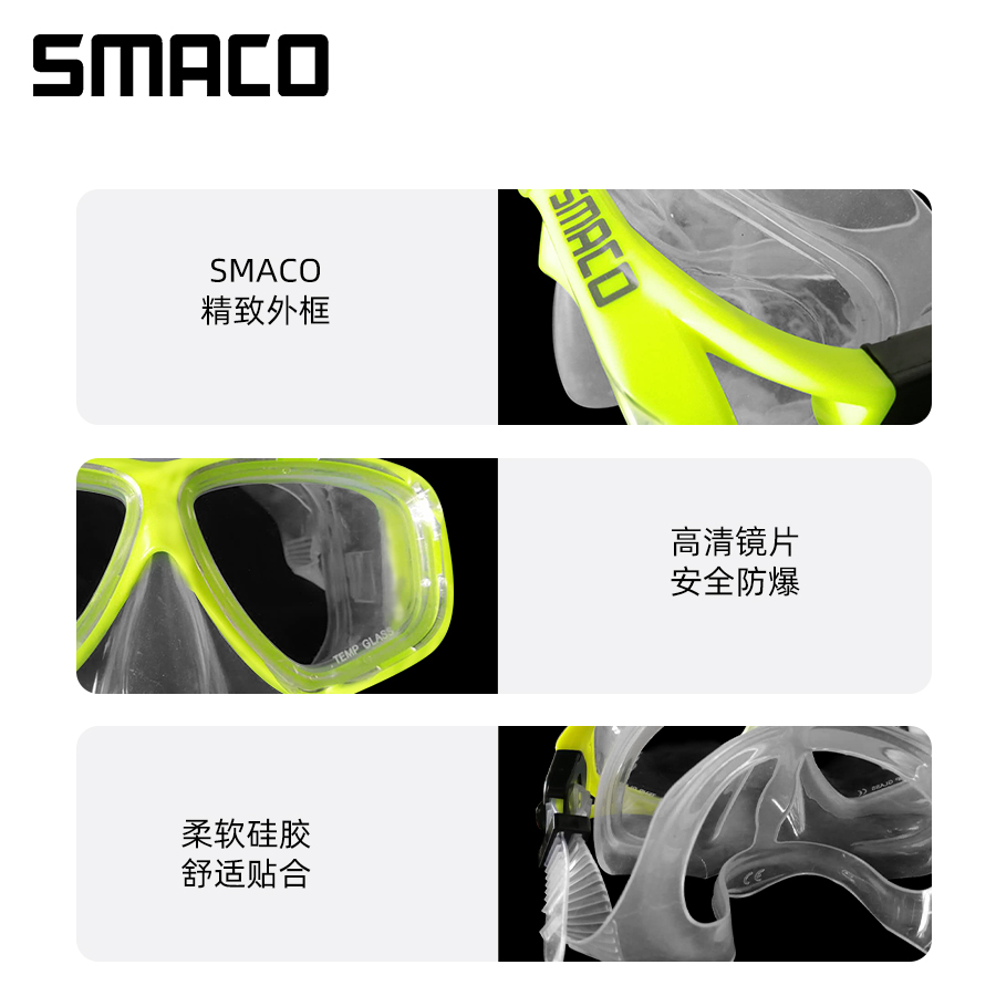 SMACO diving mask scuba swimming glasses tempered glass snorkeling triple treasure mask adult diving equipment