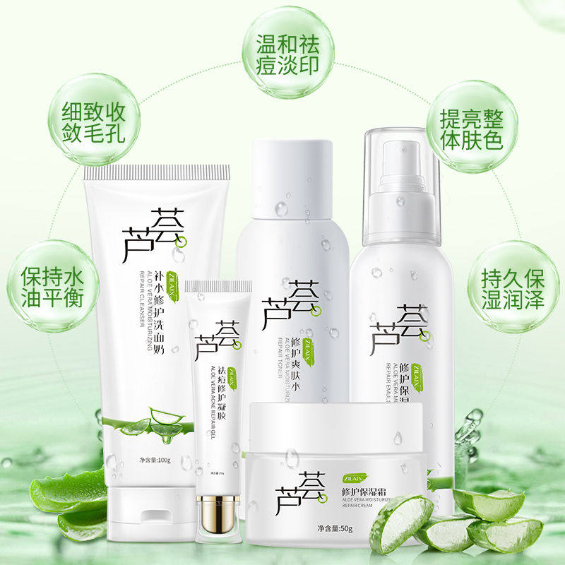 Zilaixi Aloe Vera Skin Care Set Acne Control Oil Whitening Moisturizing Moisturizing Refreshing Blemish Sensitive Muscle Lotion