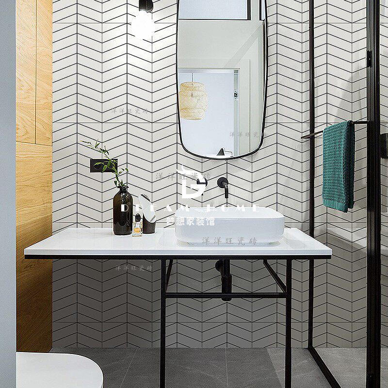 Nordic fishbone pattern arrow-shaped small white brick 300x600 bathroom kitchen bread wall brick balcony bathroom glazed brick
