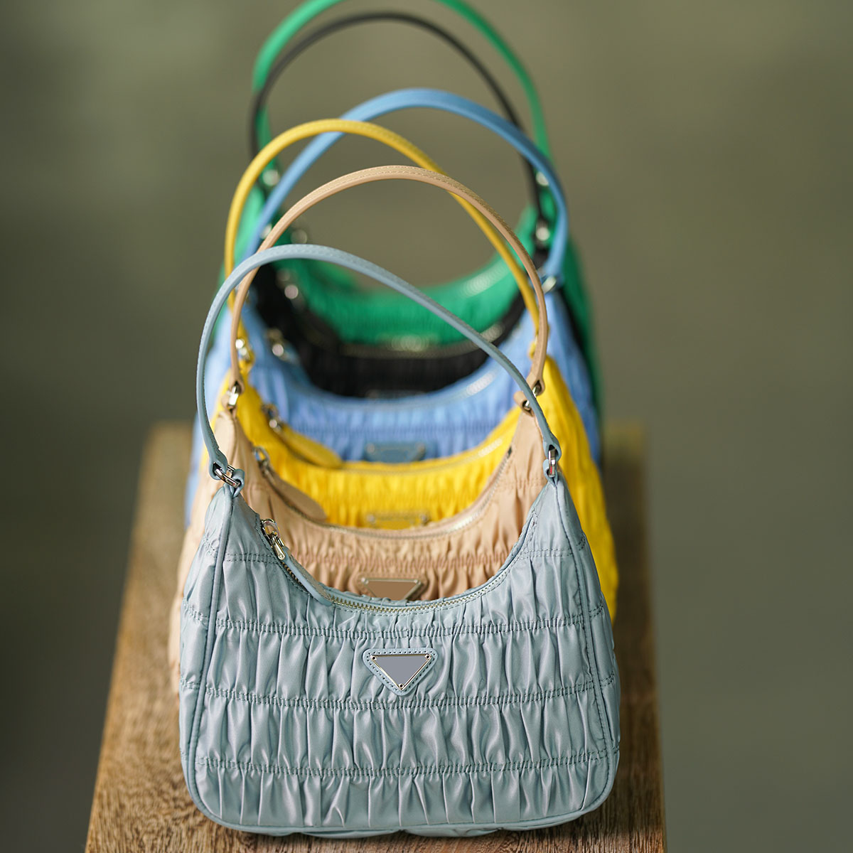 New summer nylon hand bag vintage shoulder bag medieval armpit bag net red same style pleated baguette