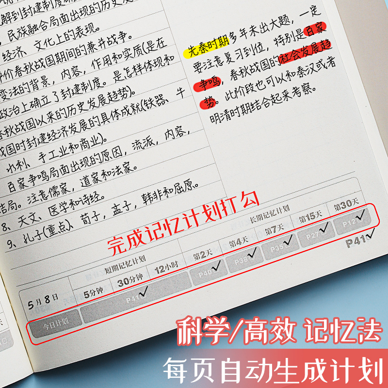 ----- Daily automatic generation of reciting plan on time card with quick memory of knowledge point ----- (1 semester fit) 4 memories This 1 set of plan table can be refresher 2400 questions