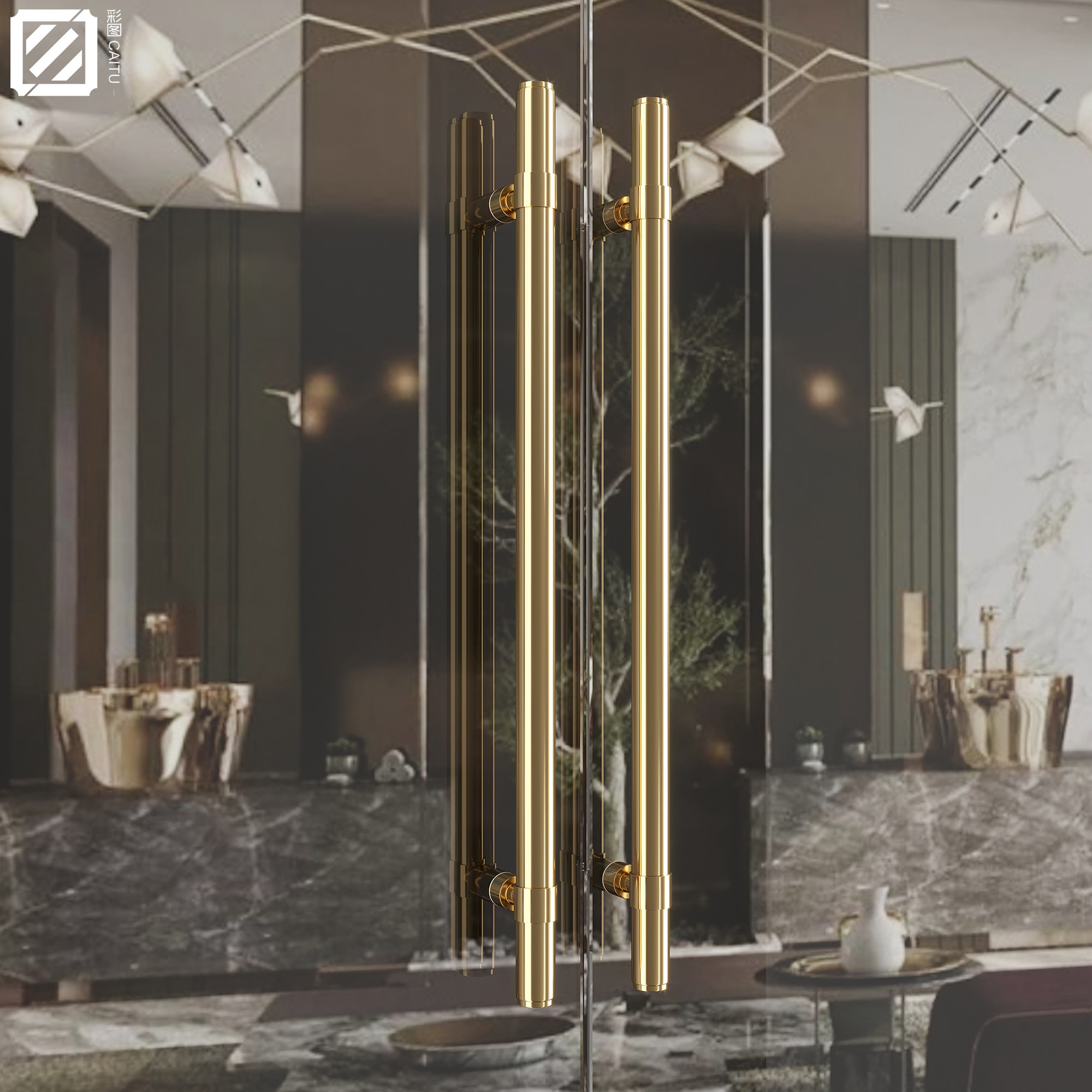 Modern light and luxurious glass door handle stainless steel to clothes shop bunk with frame solid wood door handle black armrests