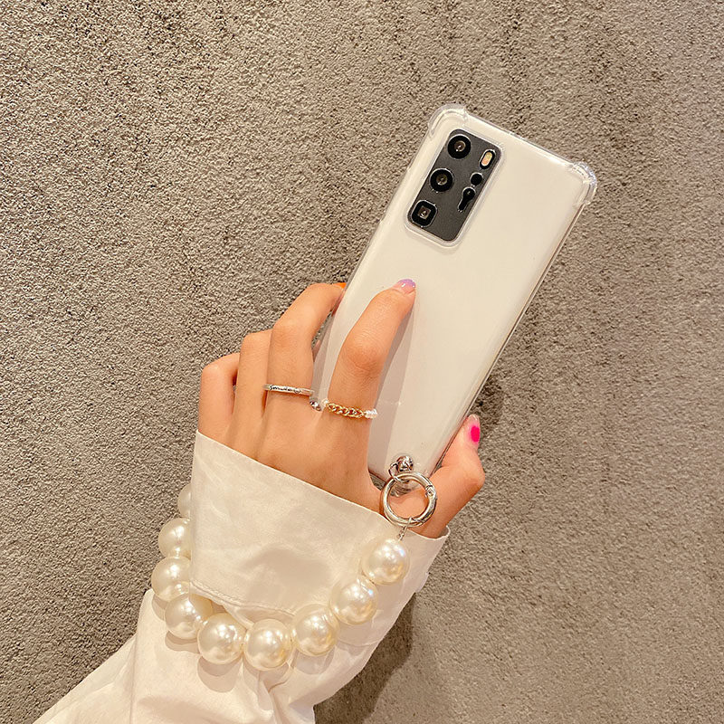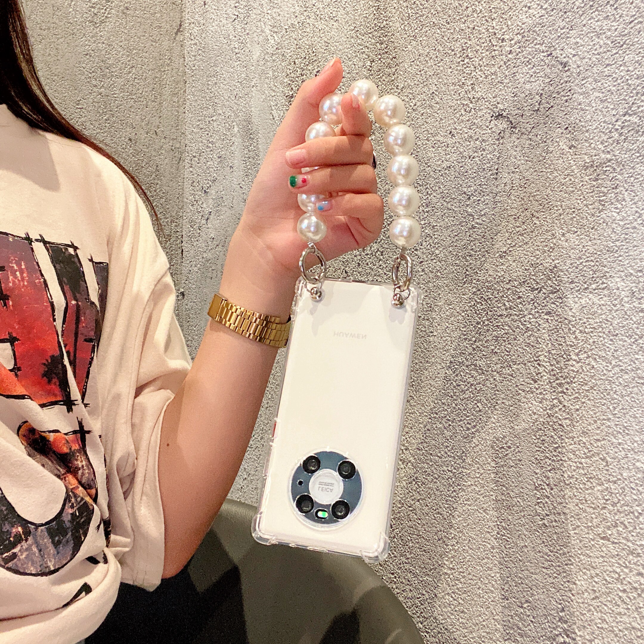 Huawei mate40pro Transparent Air Bag Big Pearl Handmade Mobile Phone Protective Shell
