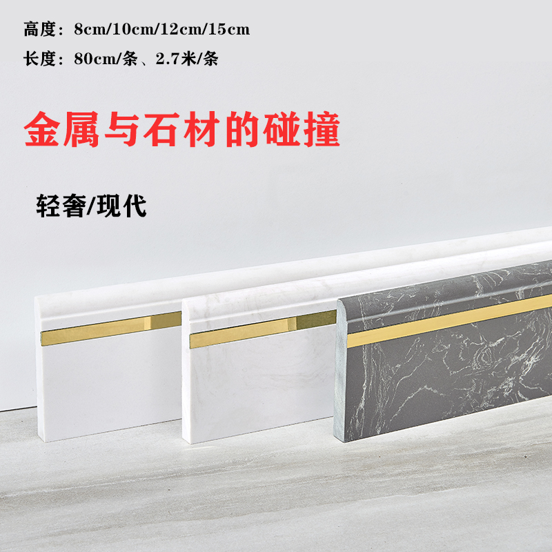 Minimalist Living Room Aluminum Alloy Skirting Board Tile Artificial Marble Skirting Black White Wall Corner Stone Closing