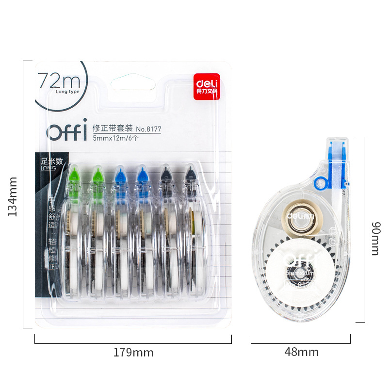 (6 packs) Deli 8177 correction belt student stationery correction correction error correction belt office supplies large capacity