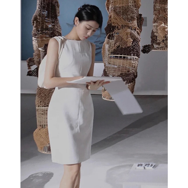 Summer 2022 new white sleeveless slim slim slim temperament professional OL mid-length step skirt solid color dress woman