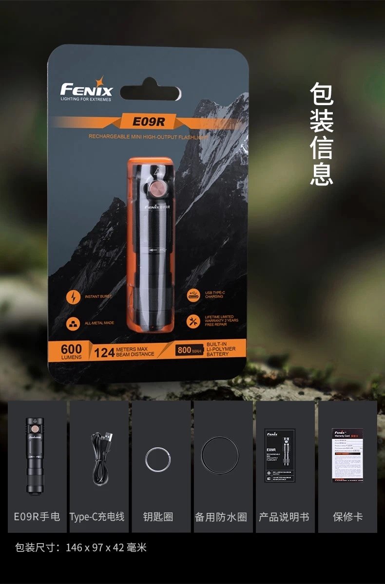 Finix E09R small-bright rechargeable EDC flashlight outdoor waterproof robust and durable genuine original plant