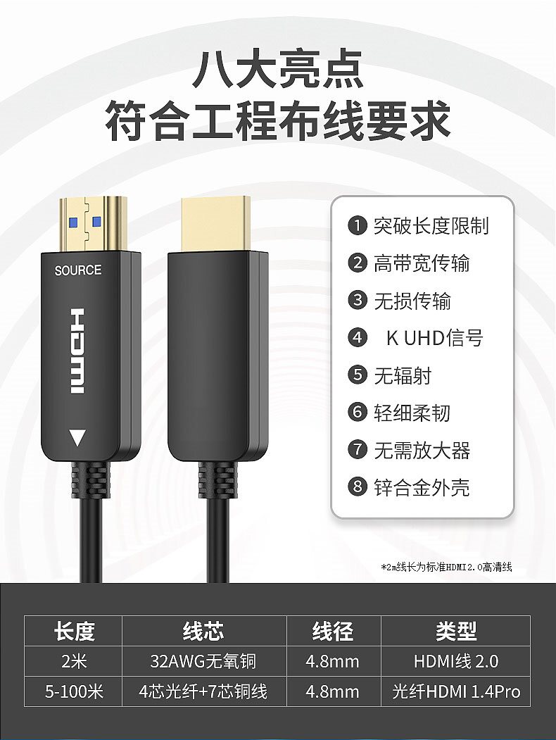hdmi fiber optic cable 2 1 version 8K ultra-high-definition video engineering line 10 meters 20 meters 30 meters 50 meters fever-grade HDR