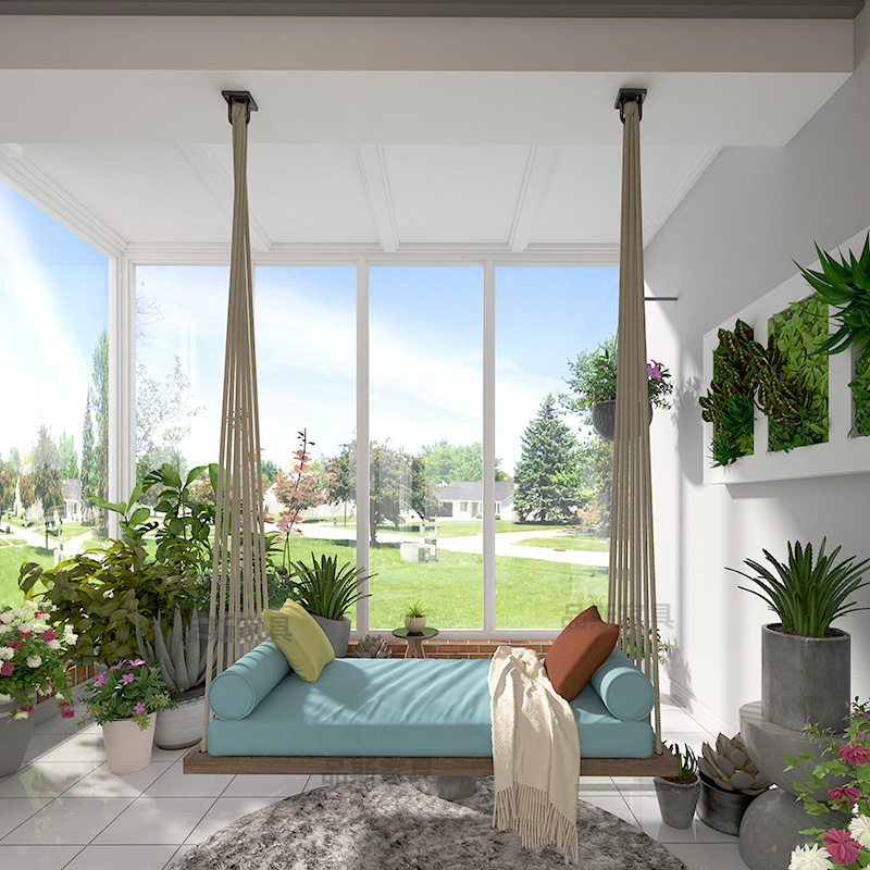 Single hanging chair with double suspended chair hammock for the rest of the room