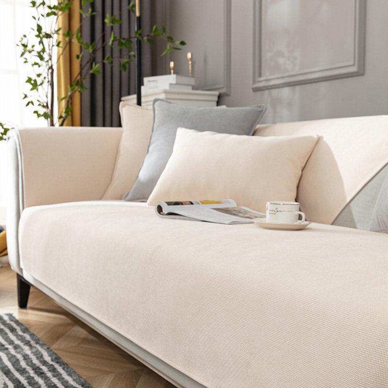 Sofa cushion linen fabric simple modern cotton and linen non-slip four seasons universal cushion beige old coarse cloth cover
