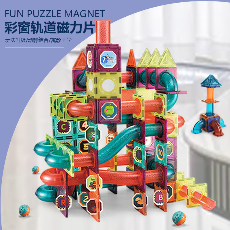 Colour window track Magnetic building blocks 42 pieces of painted window track Magnetic building blocks 68 pieces