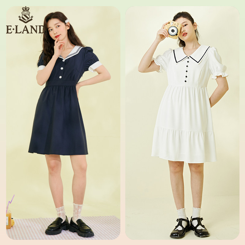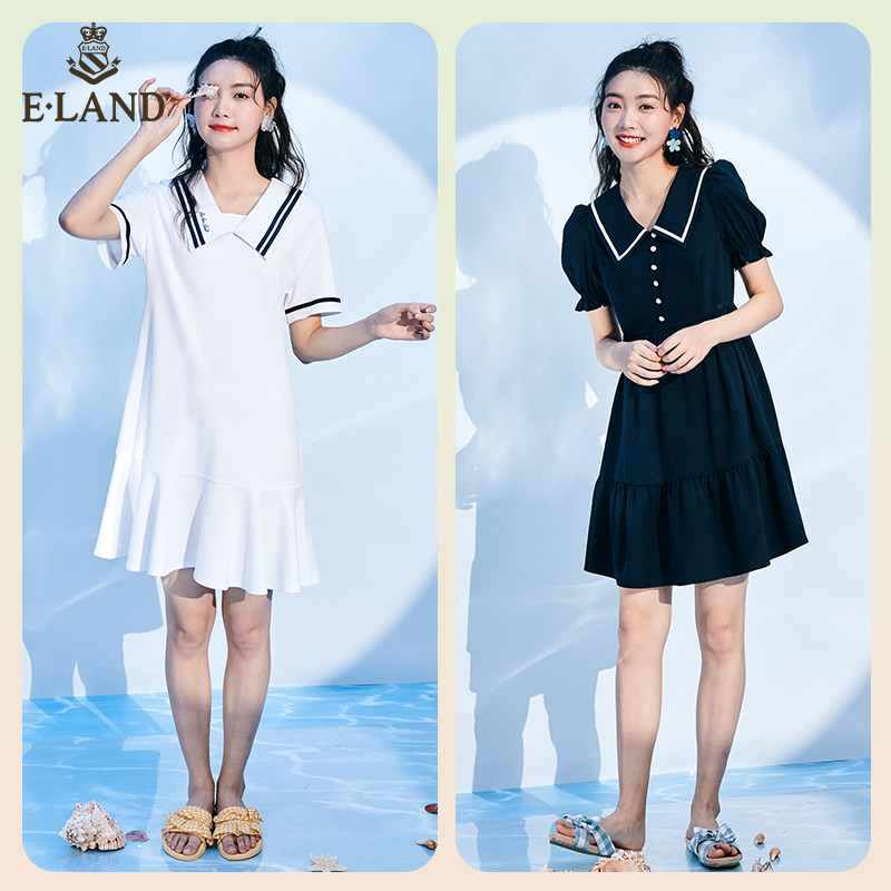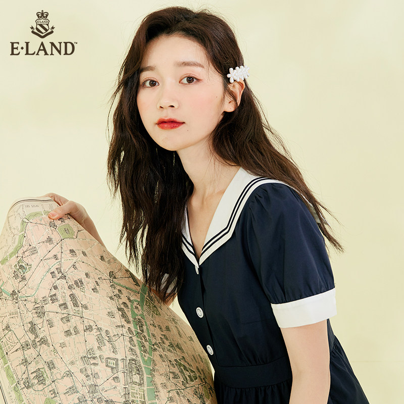 Eland Yilian summer new fresh and age-reducing sweet navy wind dress female