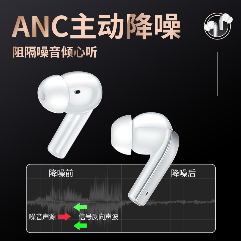 Bluetooth headset wireless 2021 new ANC active noise reduction binaural in-ear running sports anti-sweat long-wearing painless high sound quality no delay long standby battery life earplugs large battery
