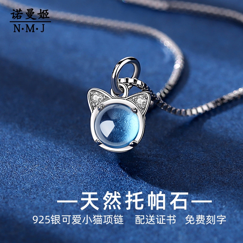 Necklace 2021 summer new female Topa stone sterling silver choker light luxury niche design sense cat crystal pendant
