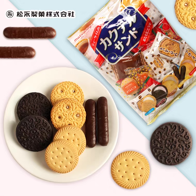 Japan Import Net Red Snacks Matsuga Matsuaga Mix Shummy Chocolate Cream Red Bean Sandwich Biscuit