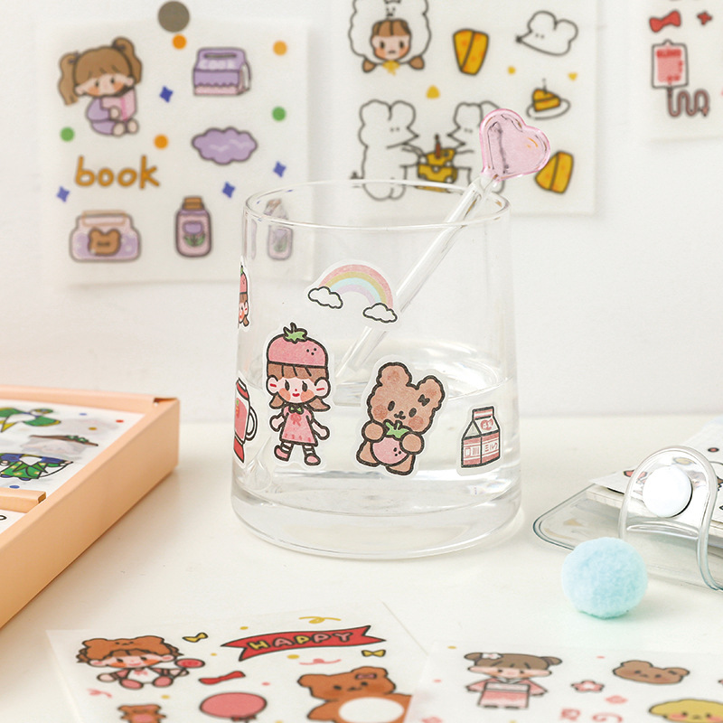 100 ins wind hand account sticker set hand account sticker decoration small pattern cute girl heart Japanese children computer hand account material mobile phone sticker cup diy sticker girl cartoon