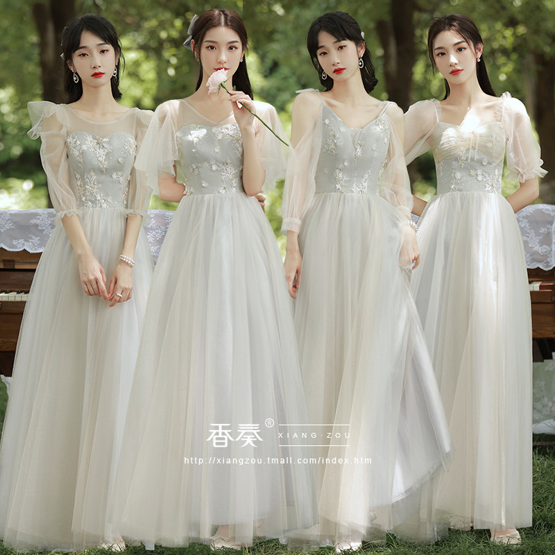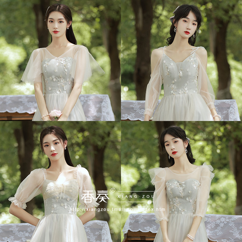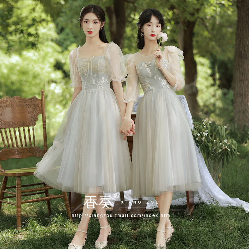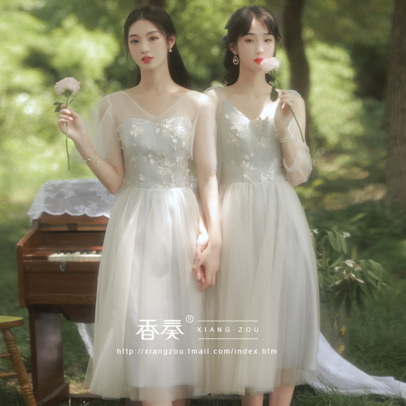 Bridesmaid dress 2022 new champagne-colored sisters group fairy spirit winter thin class dress art test performance small dress skirt female
