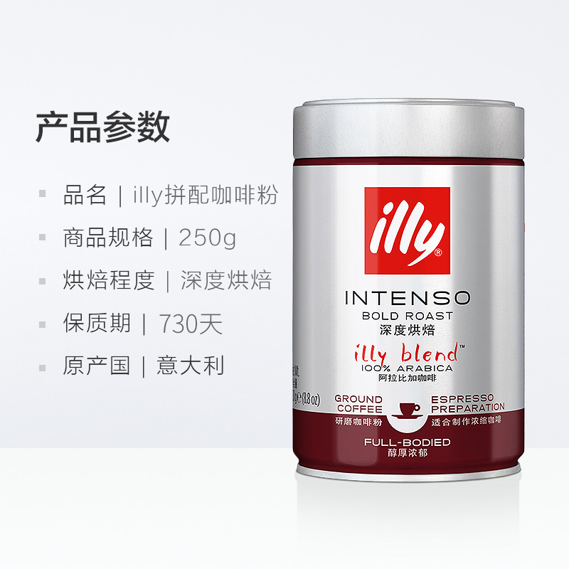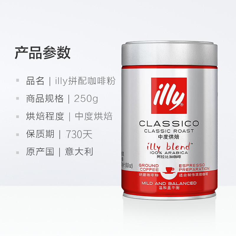 Illy illy coffee powder Italian original imported Italian-style blending medium and deep roasted black coffee powder 250g single can