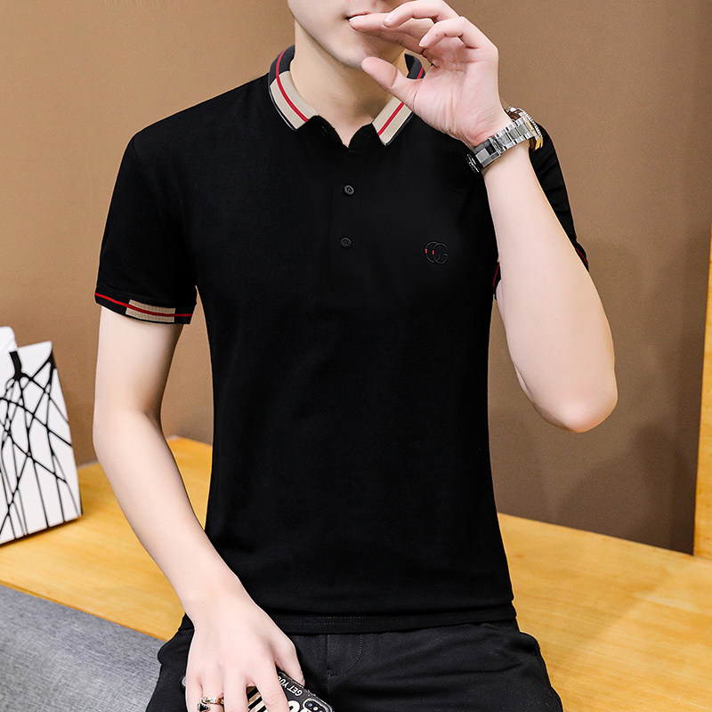 (Buy one sent one) Summer short sleeve T-shirt male pure cotton Trend Turned Polo Shirt Ice silk men equipped with collar clothes