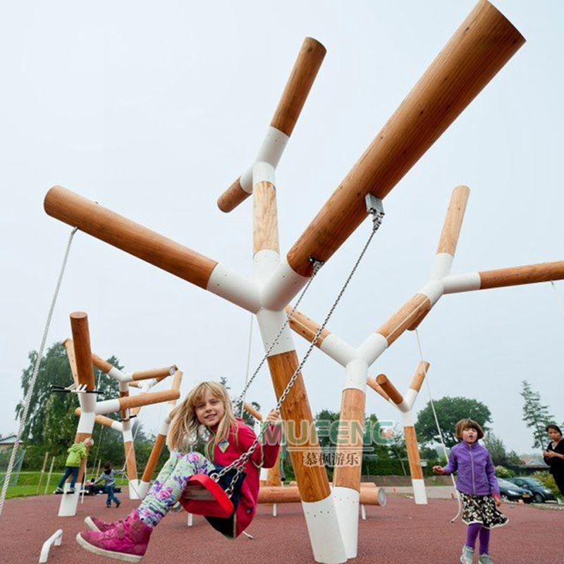Outdoor park park park garden landscape sand pond anti-corrosion wood tree branch swing children's amusement facilities finished customization