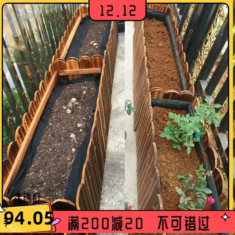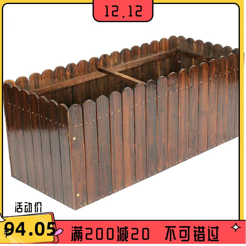 Carbonized anticorrosive wood flower box rectangular wooden flower pot flower pot outdoor balcony planting pot outdoor extra large planting box