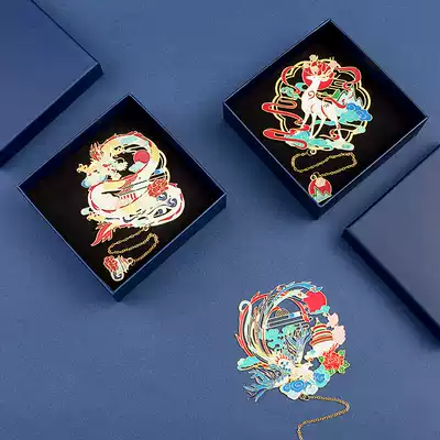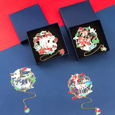 Sky metal classical Chinese style brass bookmarks simple literary exquisite tassel creative small gift souvenirs ancient style students with Ruihe koi fairy deer totem graduation Teacher's Day gift