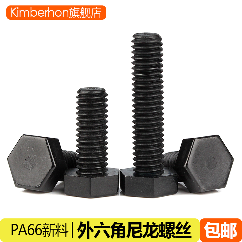 M3M4M5M6M8M10M12 Hexagon Nylon Screw Black Plastic Bolt Insulation Screw Plastic Screw Rod