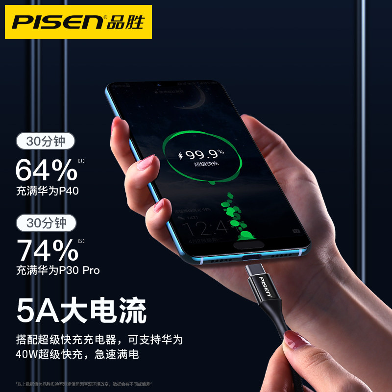 Pinsheng charging cable Type-c braided data cable 5A fast charge oppo millet phone lengthened mate40 glory 50