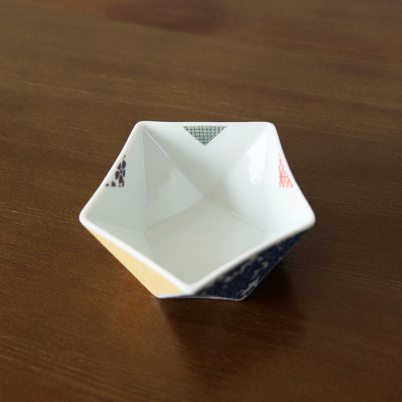 Spot Japan imported Kutani burning Chiyo paper pentagonal small bowl Japanese ceramic fruit bowl bowl plate