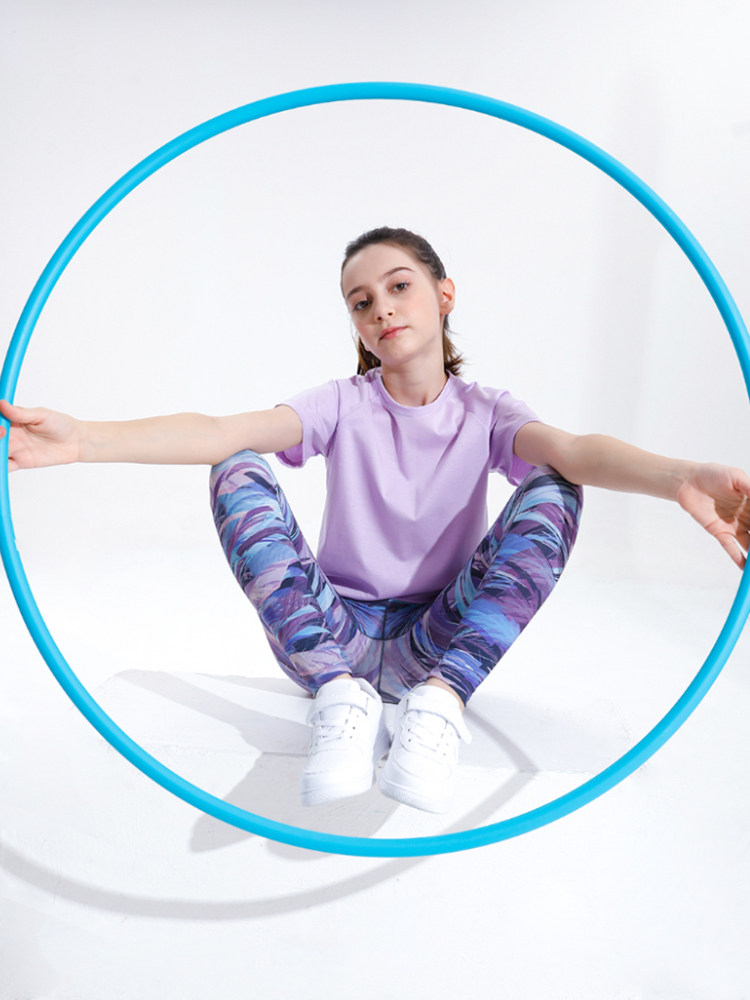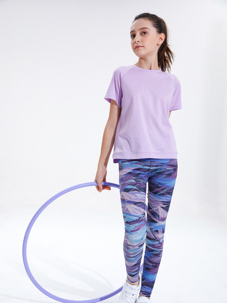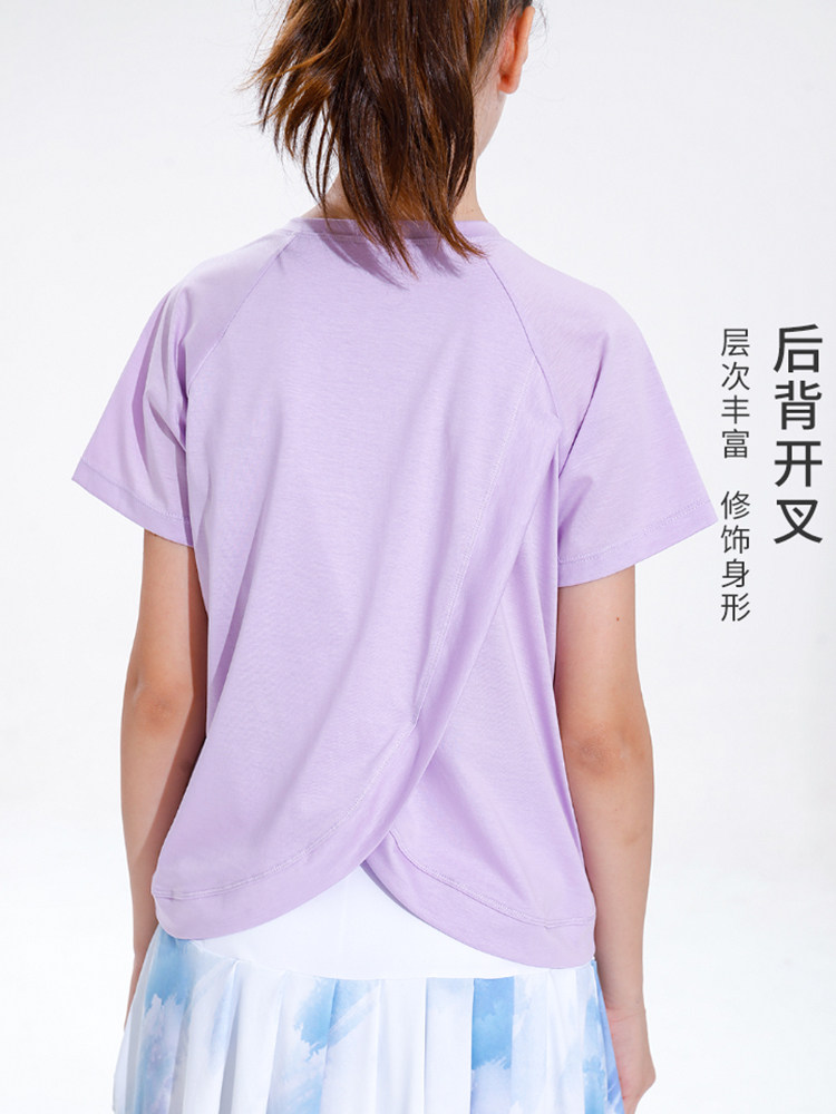 Girl speed dry clothes Summer thin jacket short sleeve T-shirt back open fork design feeling small child round collar pure cotton